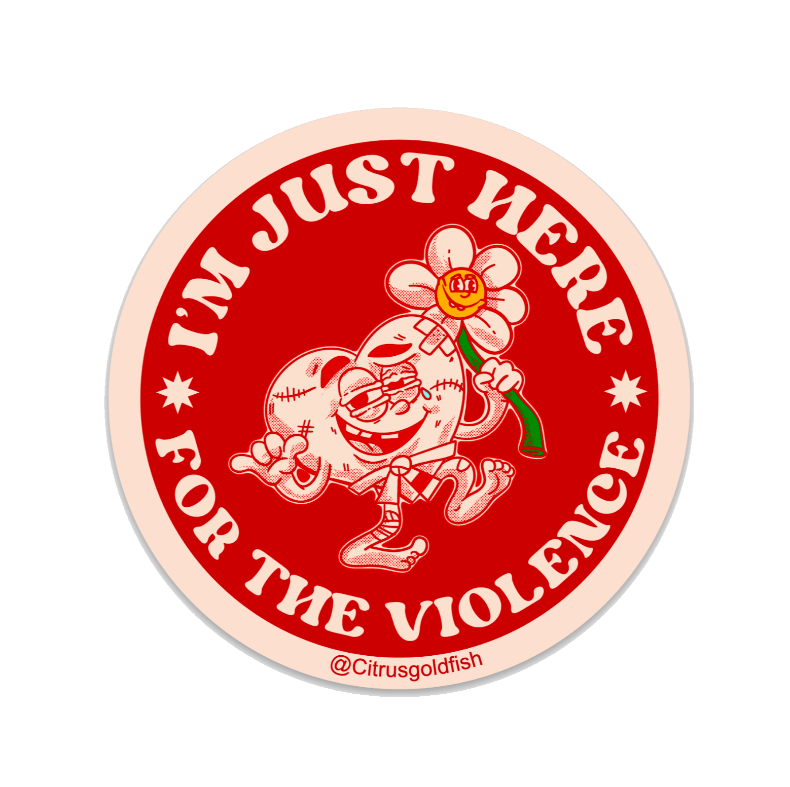 Add some fight to your vibe. This bold 3x3” embossed vinyl sticker features original artwork that says it all: “I’m just here for the violence.”