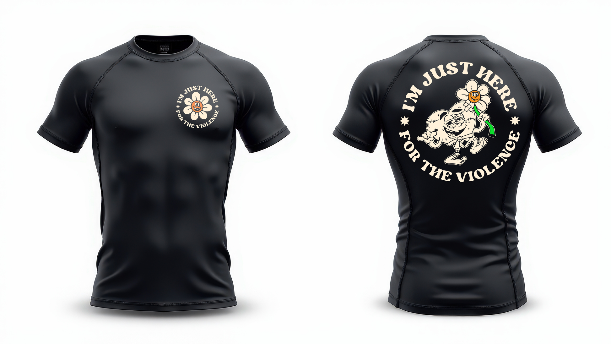 PRE-ORDER: IM JUST HERE FOR THE VIOLENCE RASH GUARD (red or black)